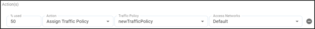 The user can configure to assign particular Traffic Policies to the network when the data usage reaches a specific percentage of the total quota.