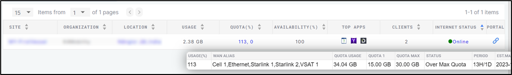 Quota Usage Detail - WAN or Traffic Policy Assignment / Interface disablement