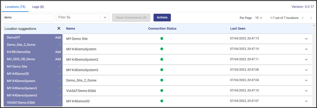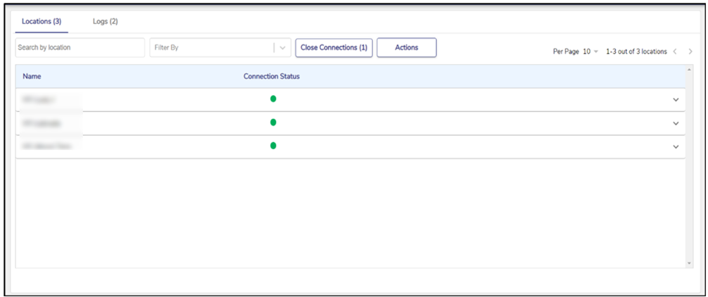 Filter by field is used to filter the sites under the Location tab based on their Connection Status. The options available are: