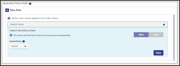 | After configuring the implicit allow or deny rule, click Save. |