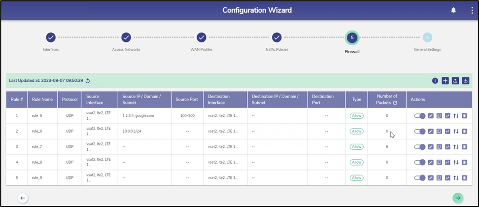 The system again validates the uploaded file. Once the validation is successful, the Firewall Configuration will automatically reflect in the Firewall Rules table.
