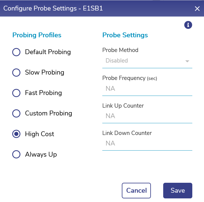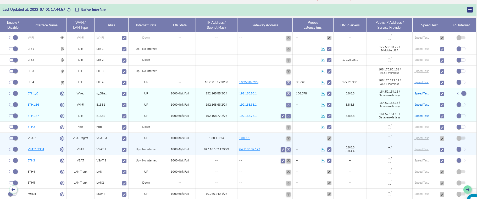 6.4.0 release introduces a new WAN type (similar to LTE/VSAT/WiFi) called FBB. With this interface type configured for any WAN links, the interface can be monitored independently. Along with this configuration, this interface can have a unique probe configuration, called “High Cost”. With this probe configuration, the FBB link is considered UP and usable as along as the physical link is active, there will not be any probes or speedtest done on this link and no operational traffic will be send on this link as well.