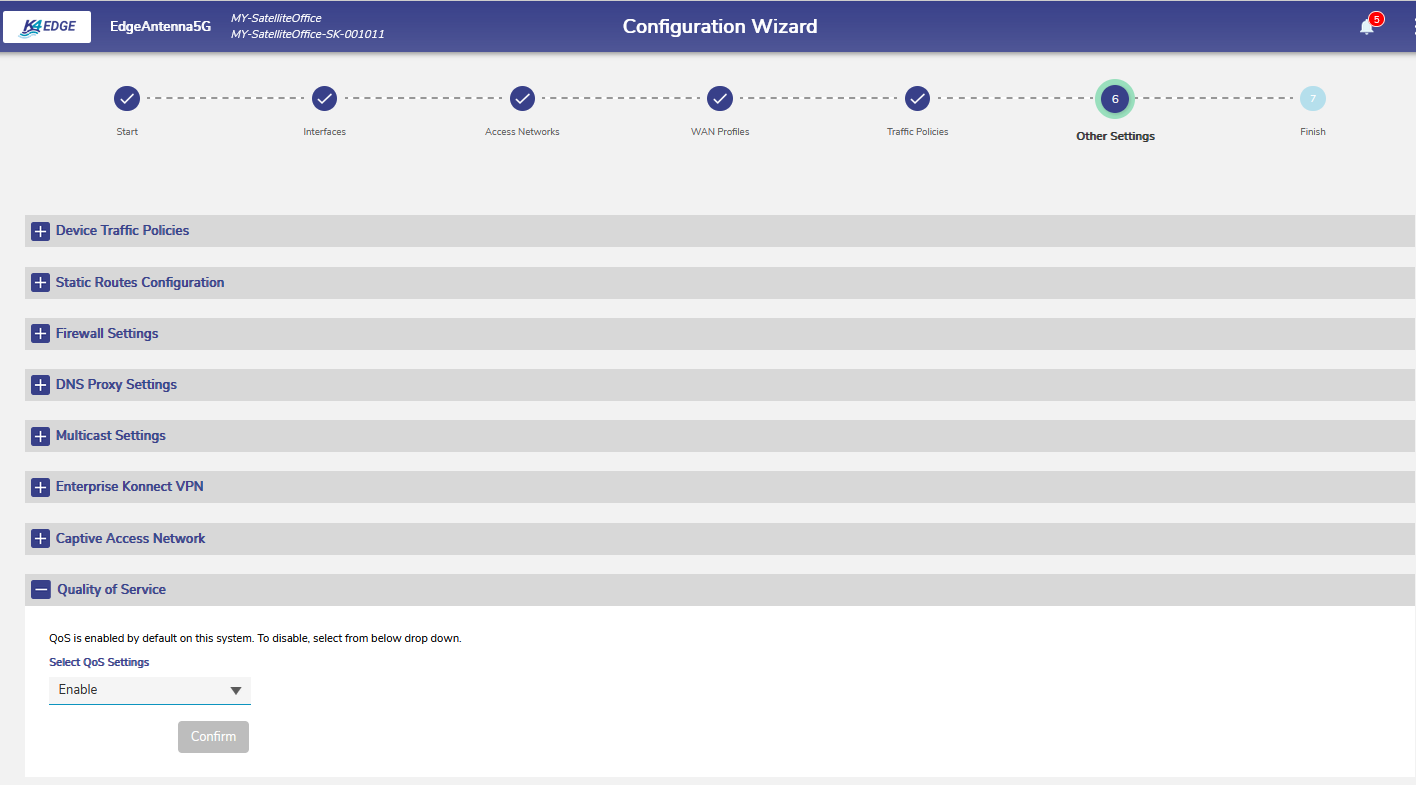 With QoS disabled, the system will not provide Traffic Policies, Client and Access Network usage, and DPI services. When QoS is enabled, the system performance is roughly halved. It is recommended if the Edge System is performing Cellular/Satellite GW services only, then it makes good sense to disable QoS to improve performance.