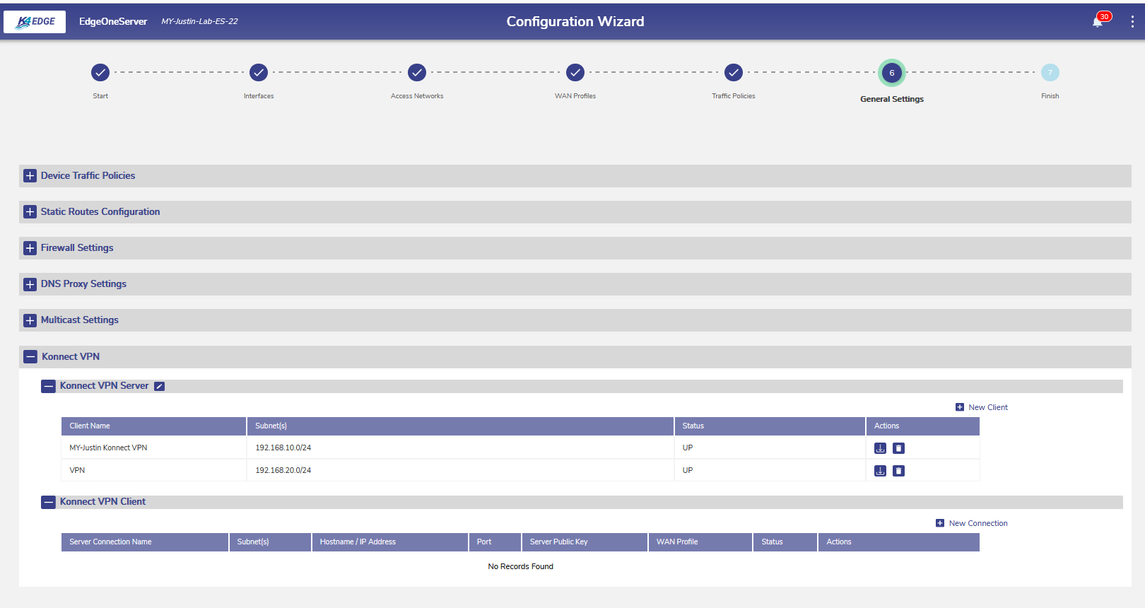 This allows the Edge System to VPN access networks to a Konnect VPN Server; this is most commonly utilized between Edge Servers.