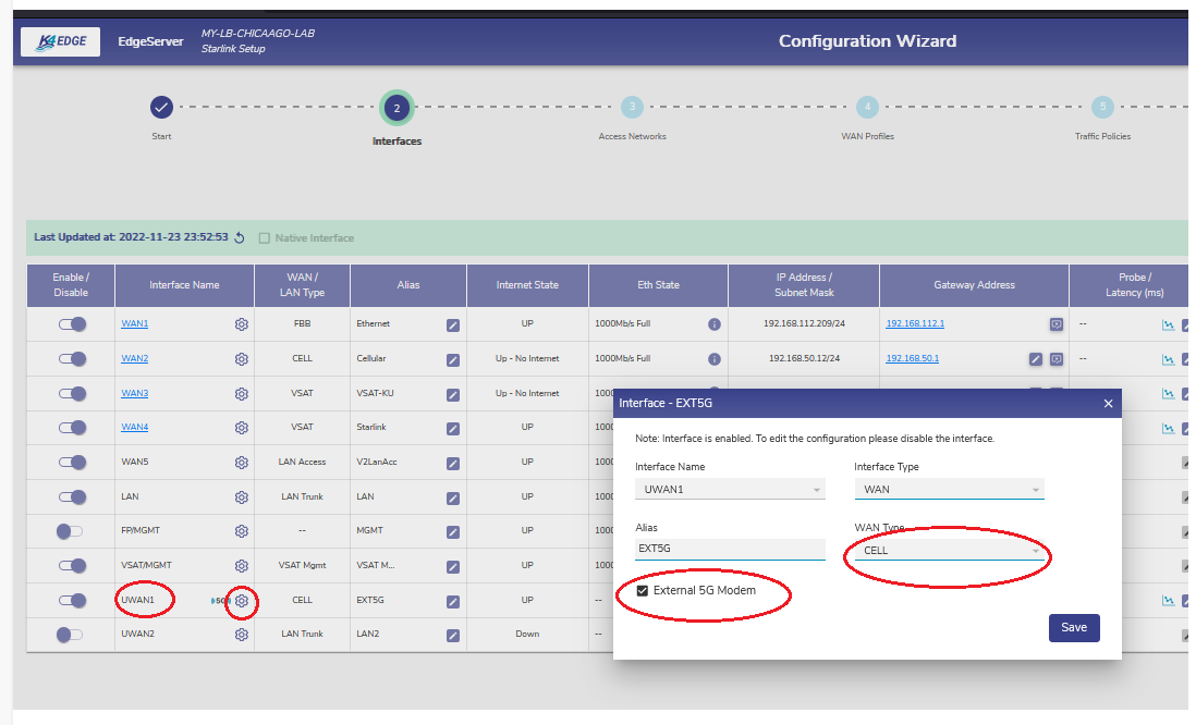 Note: with the current release the 5G adapter has to be connected to UWAN1 interface only.
