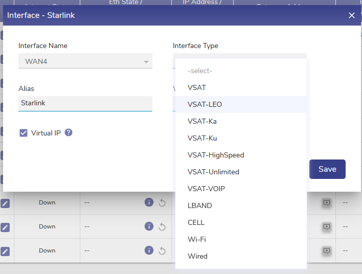 With 6.5.3 release, there are few additional WAN types are introduced. This helps in applying policies uniquely on these interfaces. FBB is renamed to LBAND. New VSAT interfaces introduced are Ka,Ku, High Speed, Unlimited and VOIP.
