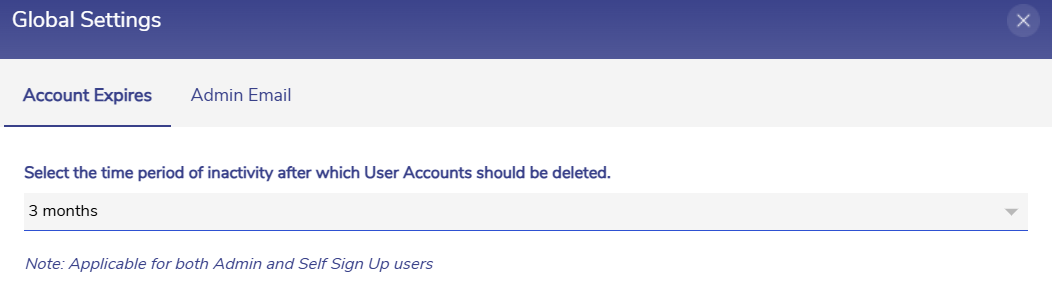 can be used to set the Account Expiry duration and the Admin Email.