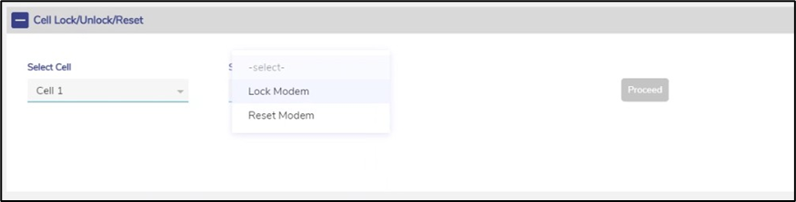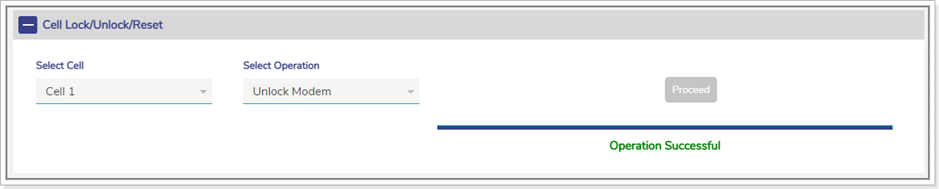 Click Cell Lock/Unlock/Reset. The cell lock/unlock becomes available, see Figure Cellular Actions in the KonnectOS User Guide.
