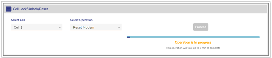 Therefore, the Cellular connectivity will be down. Once the modem resets a successful message is displayed, see Figure Cell Reset Successful.
