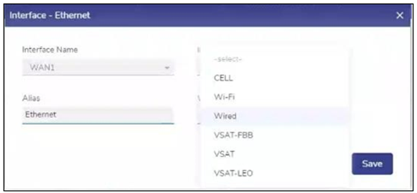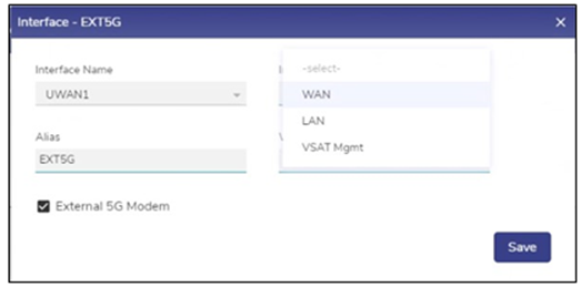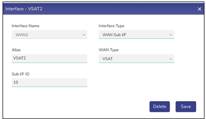 In the VSAT WAN field select the corresponding VSAT interface for which this interface acts as the management interface.