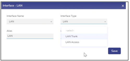 Select the LAN type from the drop down. If the LAN Type is ‘LAN Access’, then additionally enter the Sub I/F ID.
