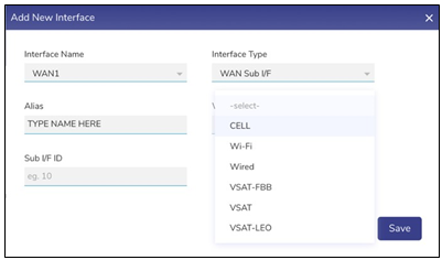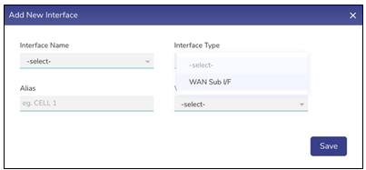 Select the Interface Type of the new Interface (WAN Sub I/F option is available) See figure below.