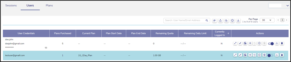 The Homepage shows the name of the Active Plan of the user, Data Used and Remaining quota, Quota Limits, Time Allowance set for the plan, Time Zone, and the Plan End Date.