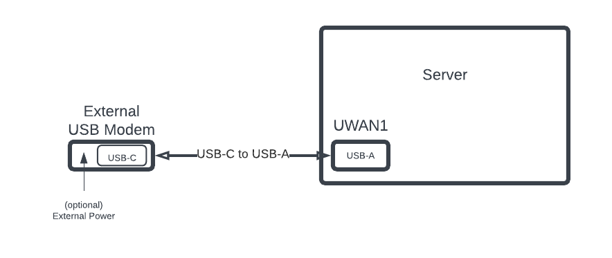 External USB Modems must be connected to the USB Port labeled UWAN1