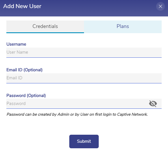 Add New User - Plans