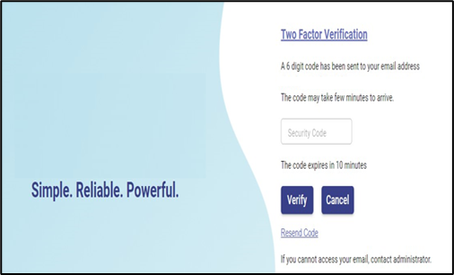 Enter the Security Code and click Verify button to login to the application.