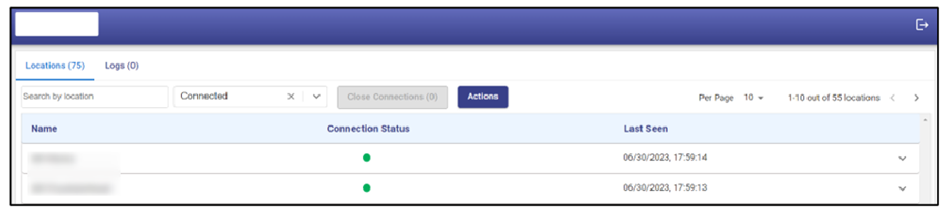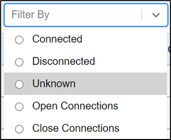 Filter by field is used to filter the sites under the Location tab based on their Connection Status. The options available are: