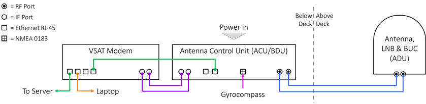 The details of this may vary. While the VSAT modem will be an iDirect X7, the antenna ADU & ACU/BDU will be different from site to site. Server in this diagram represents the connectivity back to the Katalyst/Kognitive server.