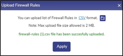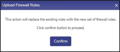 The system again validates the uploaded file. Once the validation is successful, the Firewall Configuration will automatically reflect in the Firewall Rules table.