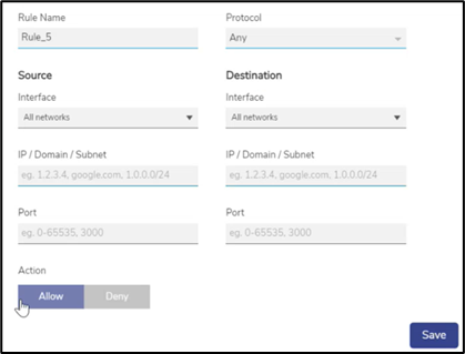 IP / Domain /Subnet | Enter the IP Address of the device for which the rule is applied or Domain Name of the device for which the rule is applied or Subnet. |