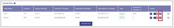 · Click Delete icon corresponding to the firewall rule is to be deleted, see figure below.