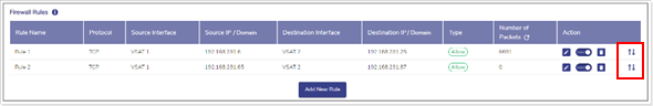 · Hold the Drag icon and drag the firewall rule based on the priority is to be assigned.
