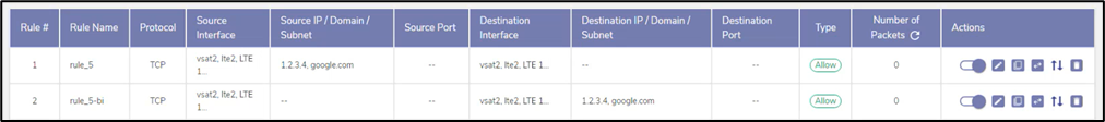 · Click Arrow icon in the Actions column to create a Bi-Directional rule.